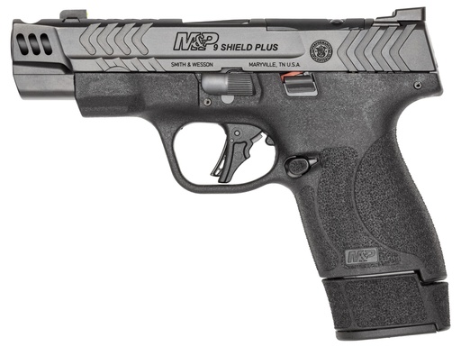 SMITH & WESSON 13990 M&P 9 SHIELD PLUS 9MM LUGER 10+1 15+1 13+1 4" STAINLESS ARMORNITE GRAY PORTED/SERRATED STAINLESS STEEL SLIDE BLACK TEXTURED GRIP